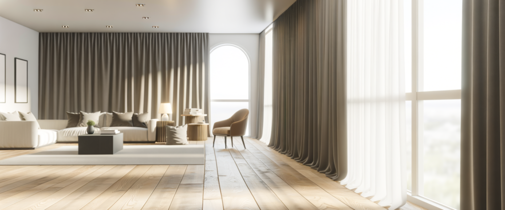 De standaard lengte van overgordijnen varieert meestal tussen de 220 en 250 centimeter. Dit zorgt ervoor dat de gordijnen net boven de vloer hangen voor een strakke uitstraling.